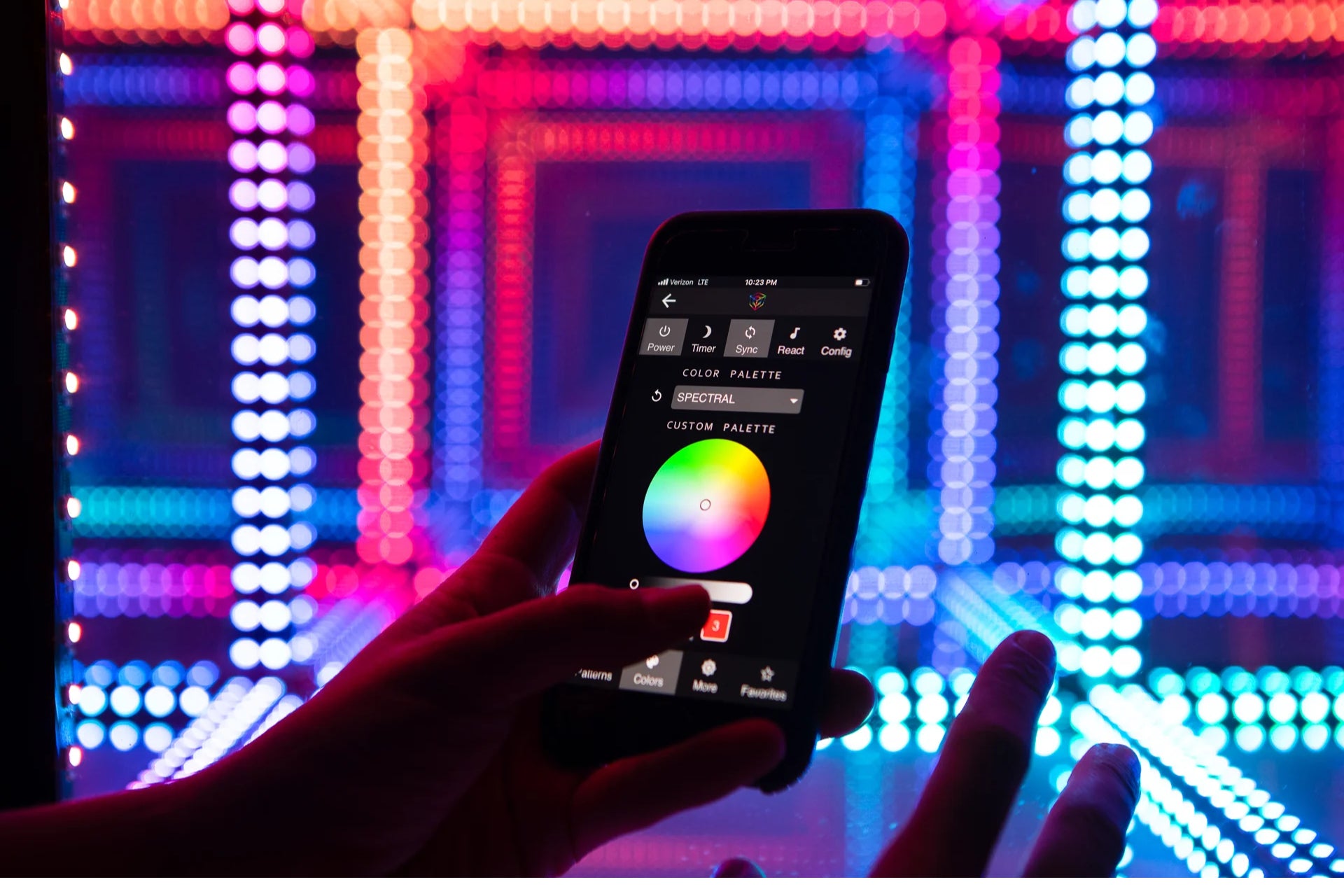 Le cœur de notre technologie. Chaque motif est unique et codé sur mesure pour captiver et enchanter. Les motifs passent en douceur de l'un à l'autre, et de nouvelles couleurs sont générées aléatoirement toutes les 10 secondes.