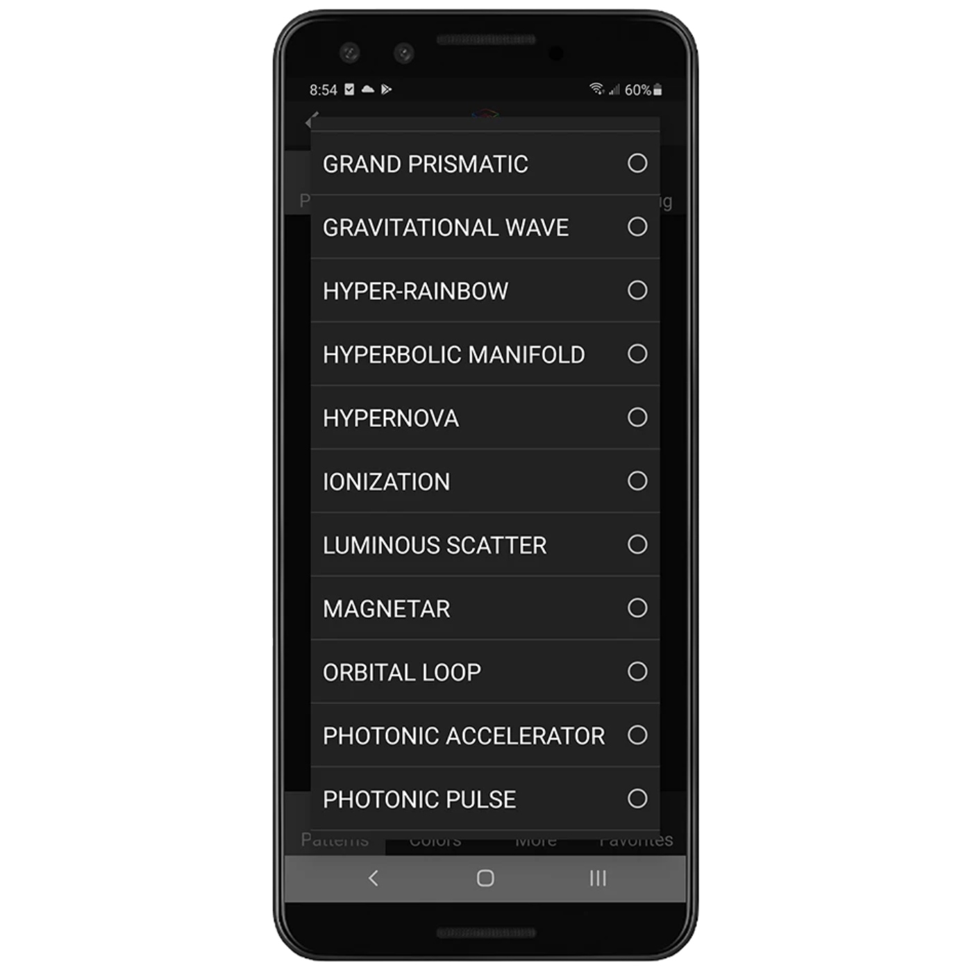 Kaléidoscopique, pour des motifs dynamiques et des symétries. Méditatif, pour des motifs zen et relaxants. Réactif au son, pour visualiser votre musique et offrir une expérience multisensorielle.