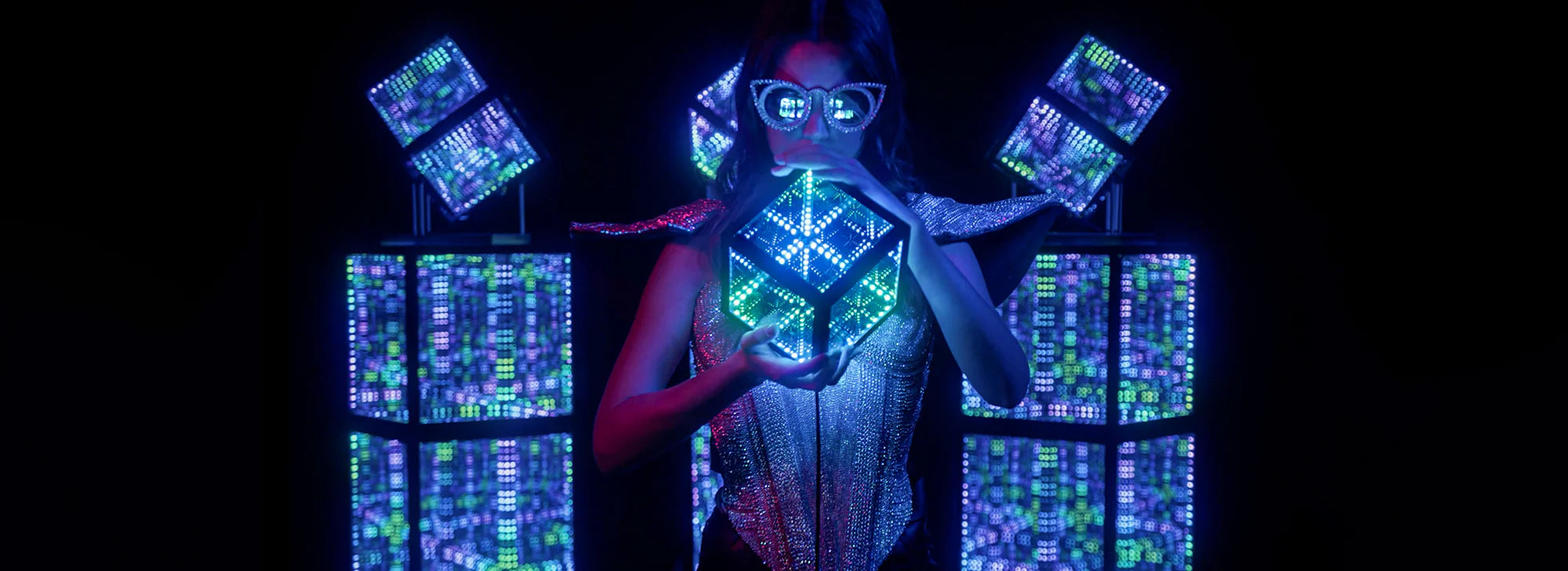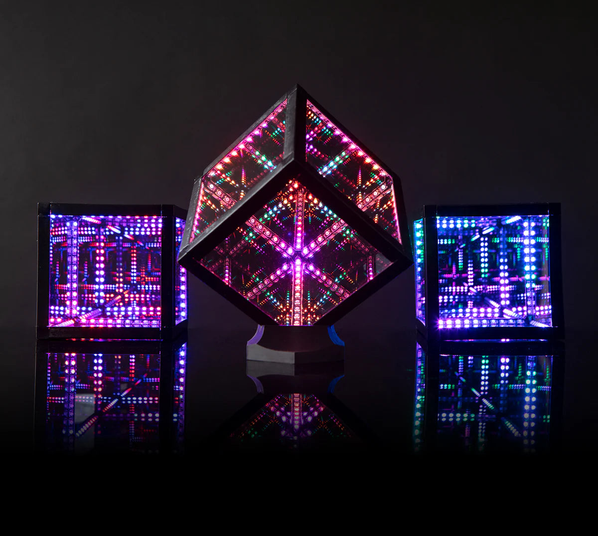 Ce cube LED à miroir infini combine technologie avancée et design minimaliste pour créer une expérience visuelle hypnotique et transportante.